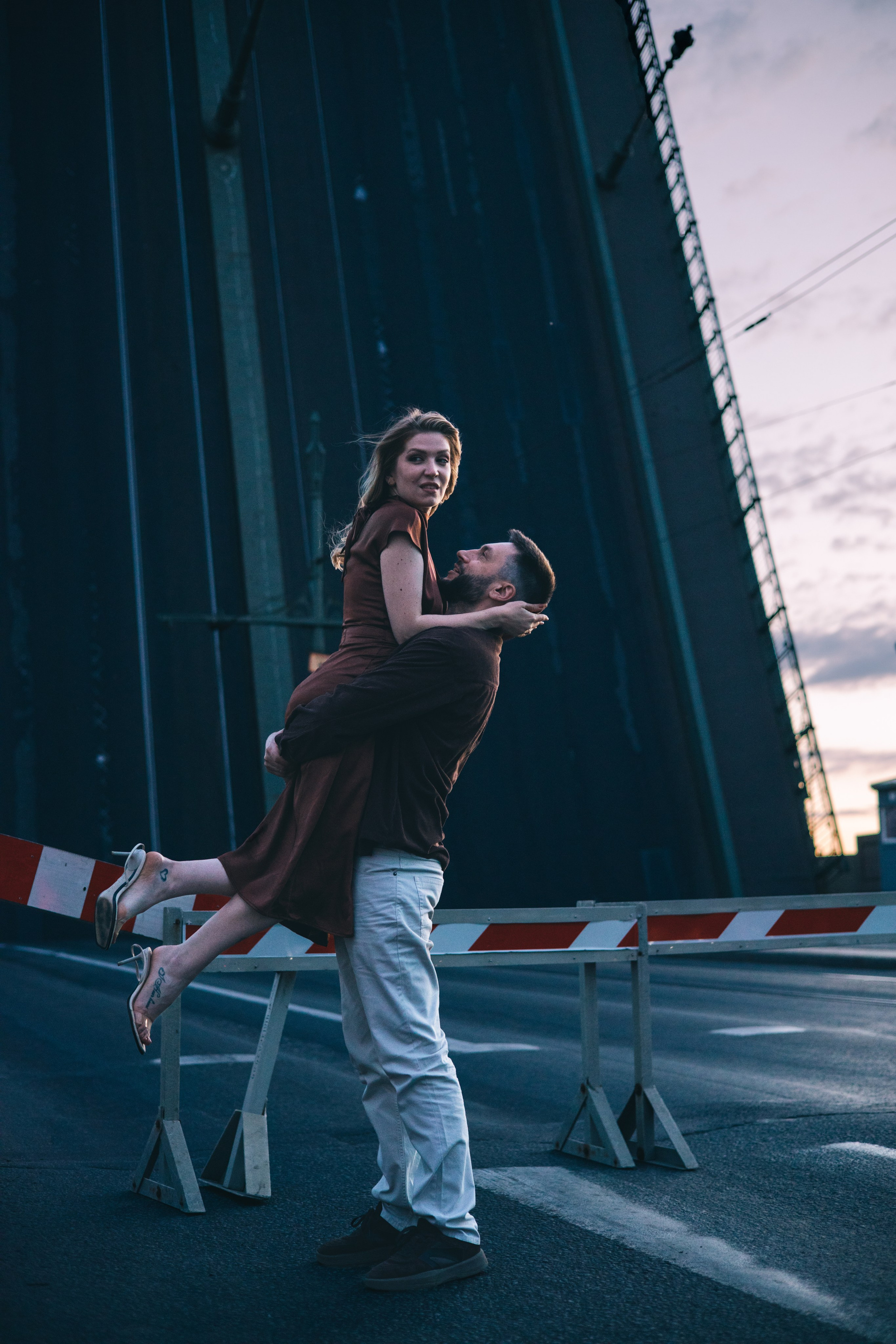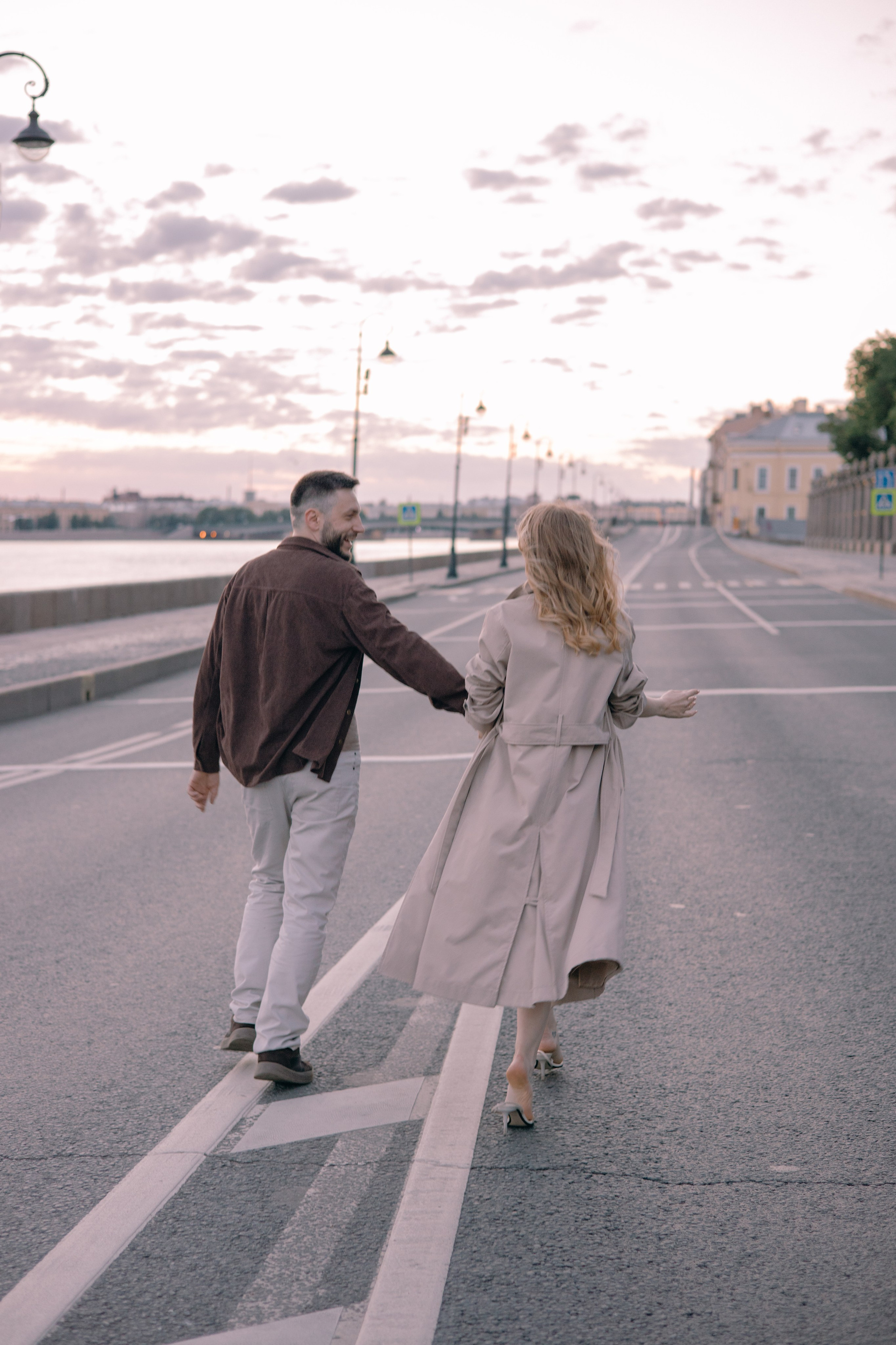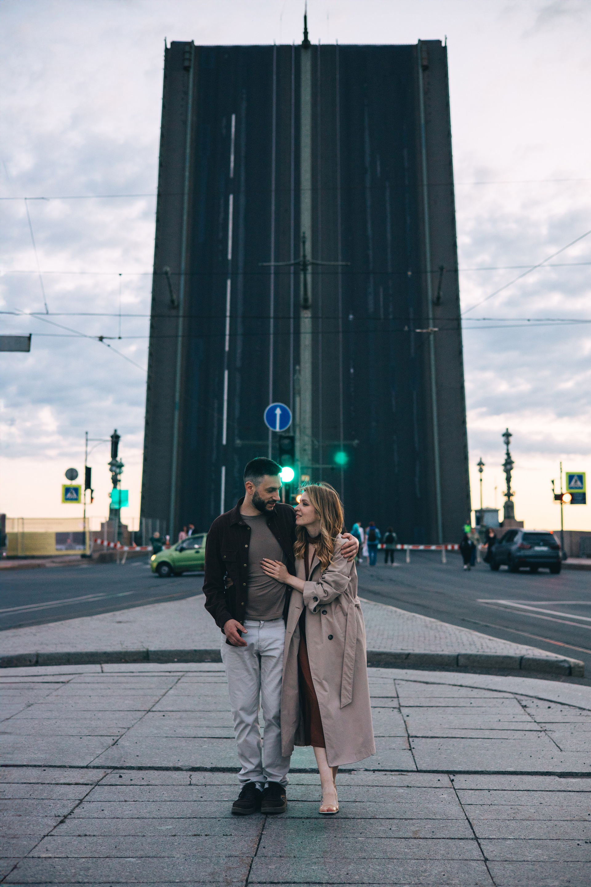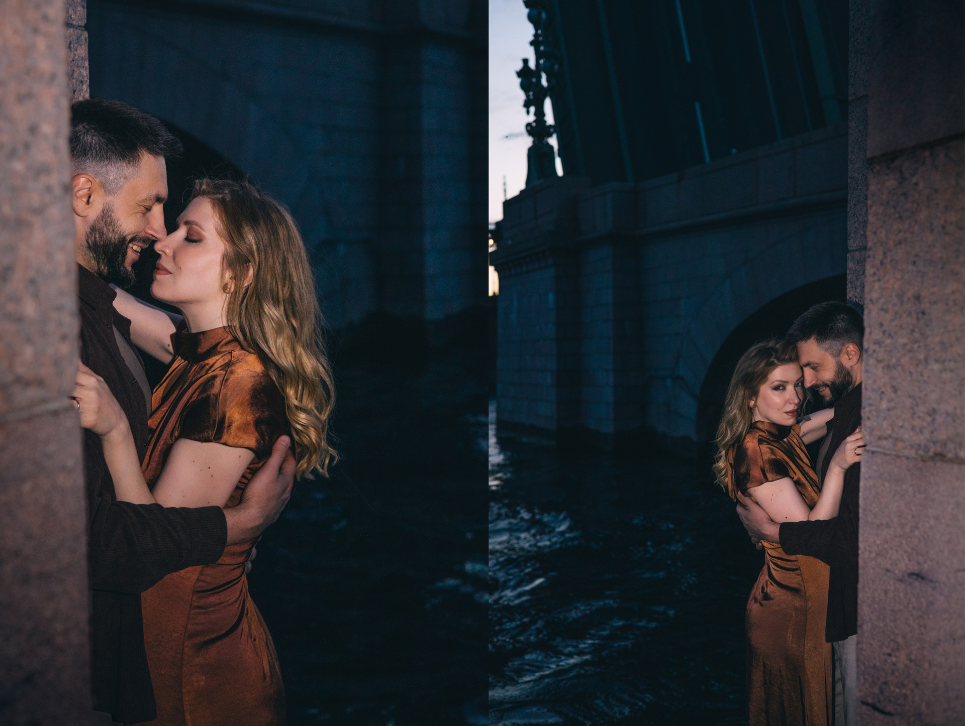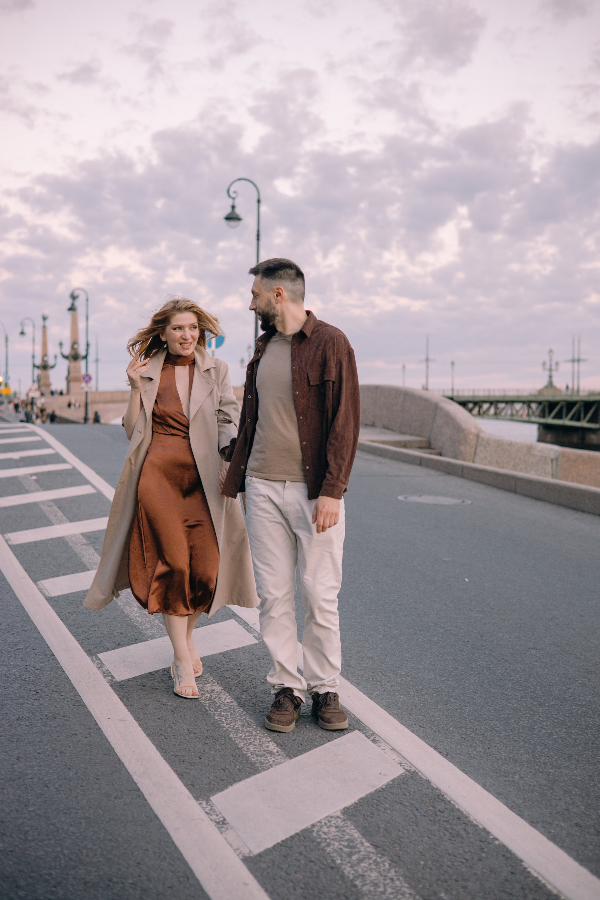 Ночная съемка на фоне мостов и других достопримечательностей в условиях пустого города.