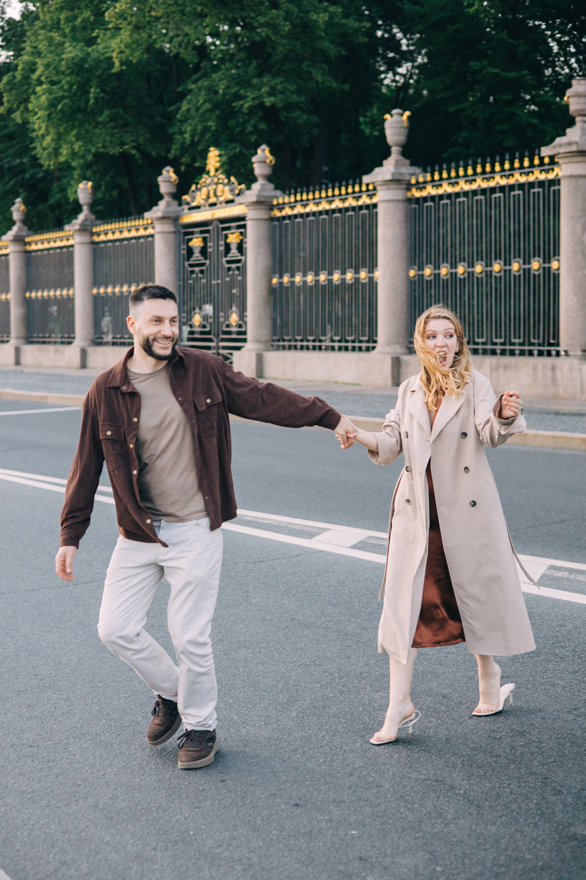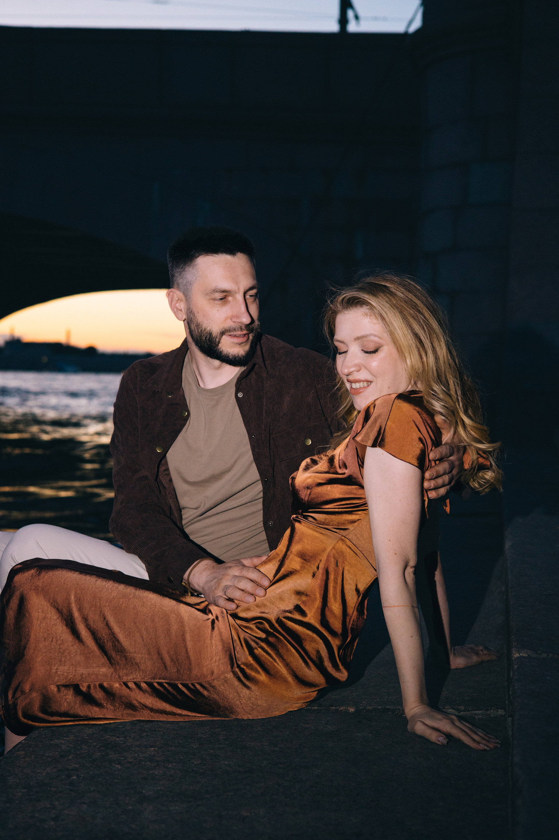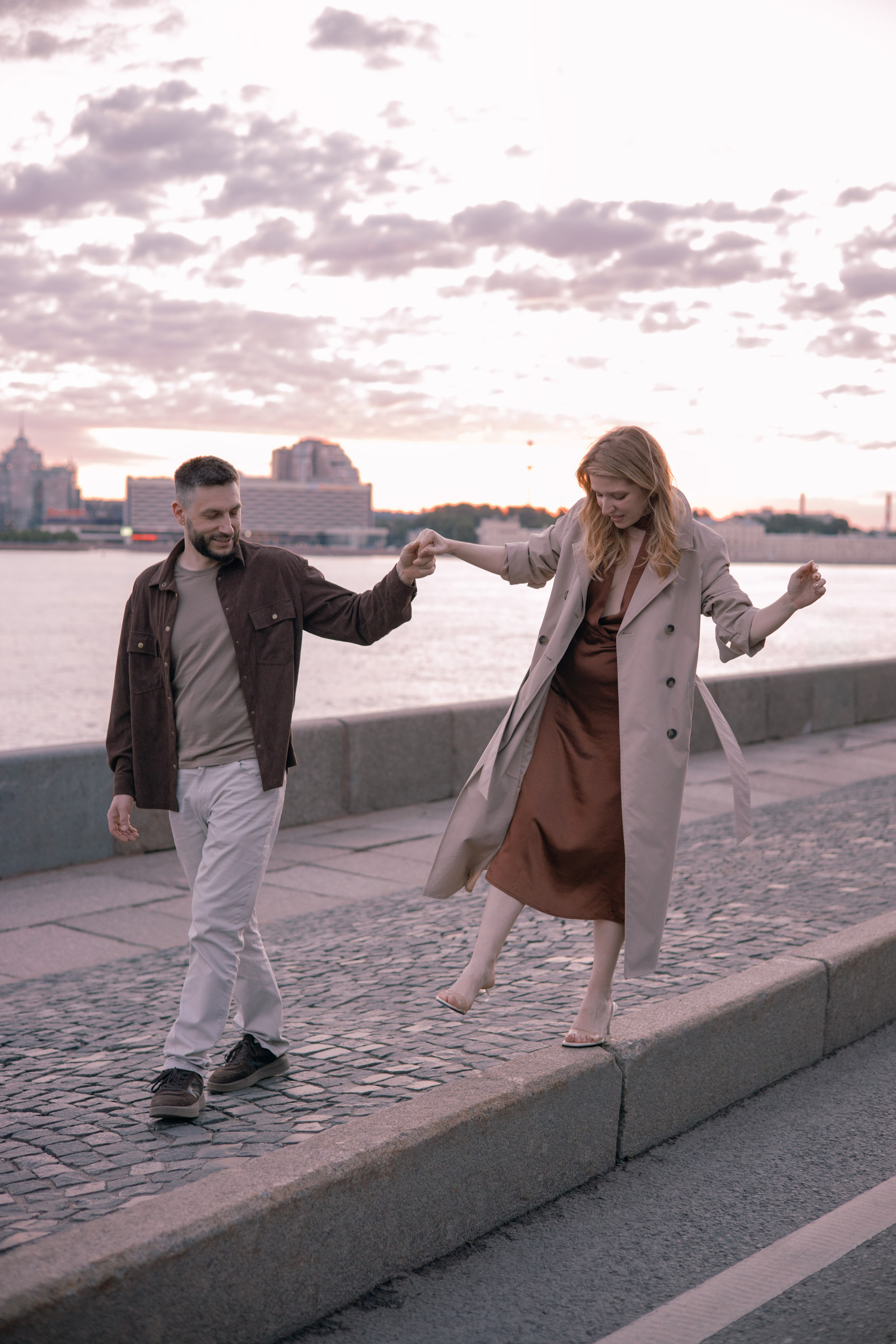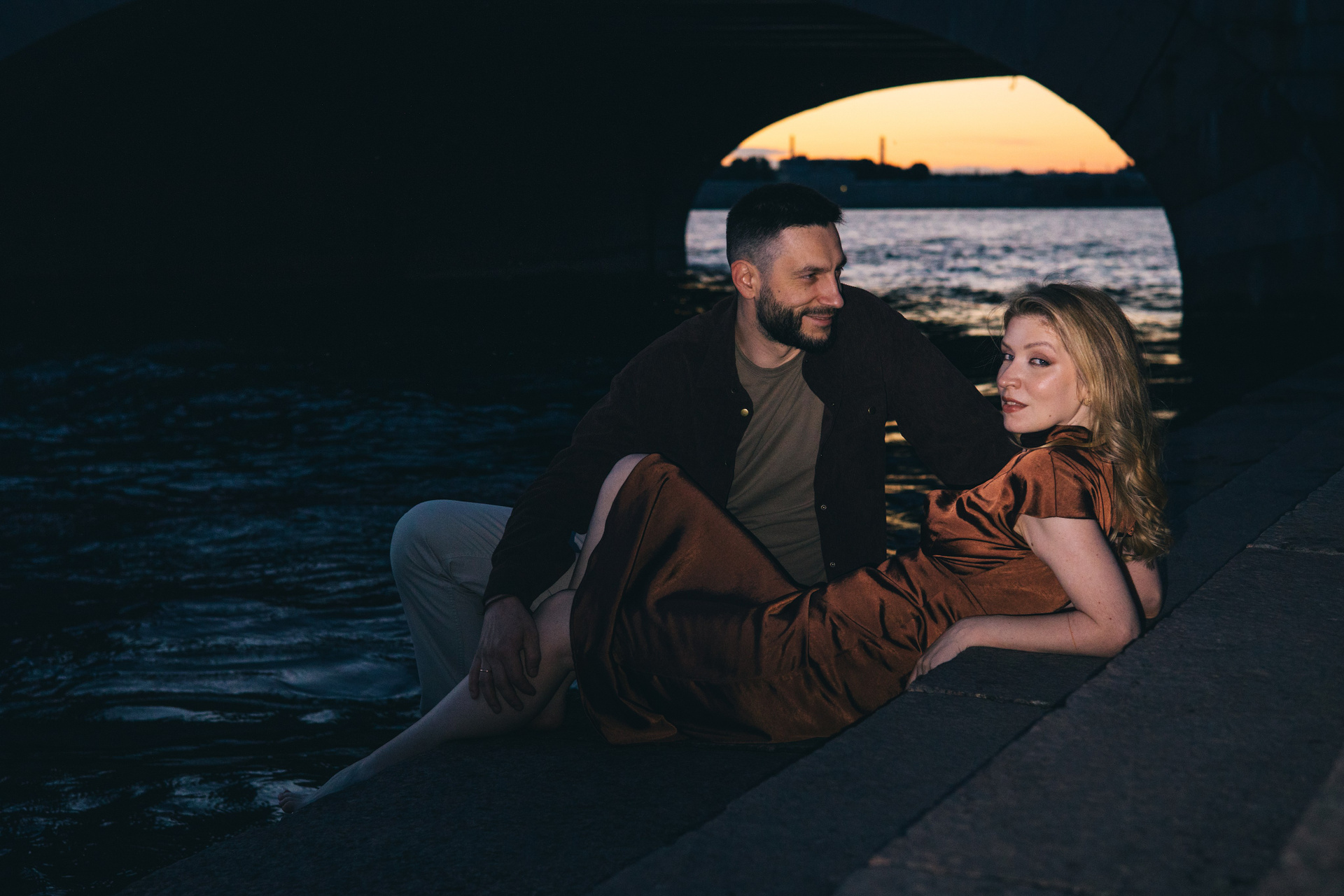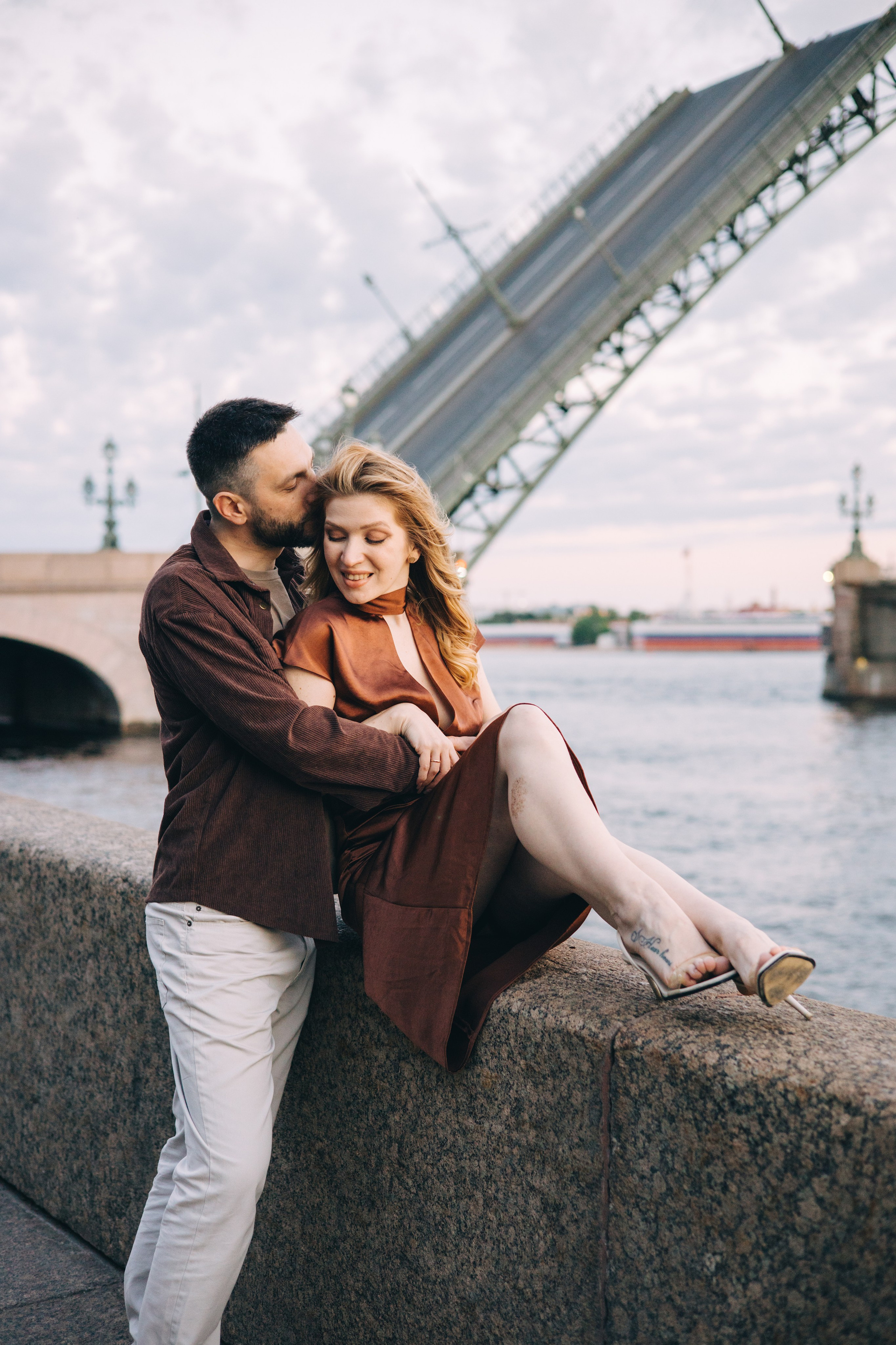 Ночная съемка на фоне мостов и других достопримечательностей в условиях пустого города.