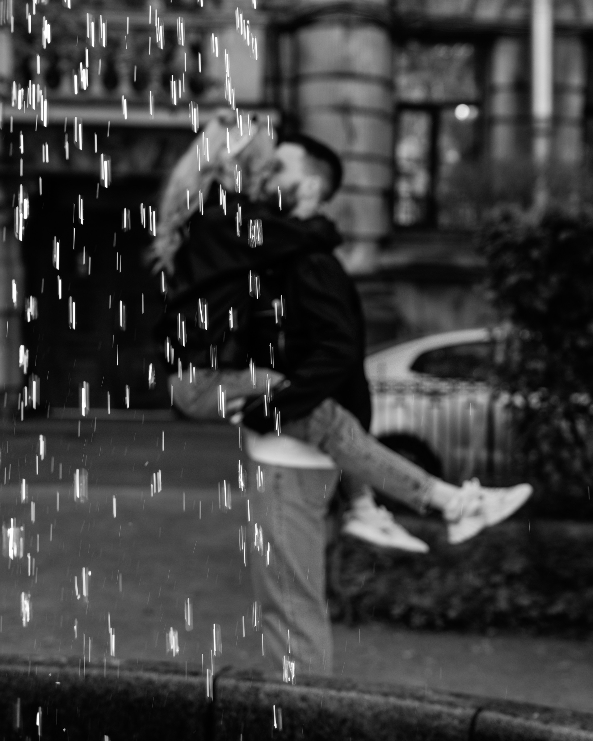 Лавстори прогулка в одеялах по ночному городу летом в Санкт-Петербурге
